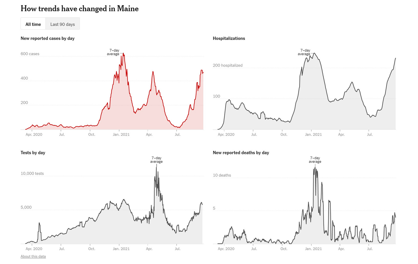 but all in all, what were seeing here looks worrying. all this vaccination is not slowing covid down at this point. it’s very early in the season to be making big calls on the northeast, but this year looks seriously aberrant and blaming this on delta given the much lower hospitalization and death rates (and possibly no higher spread rate) therefrom seems fraught.