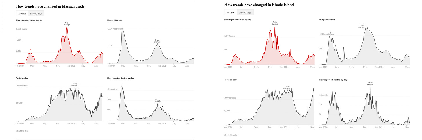 2021 covid trends in highly vaccinated new england