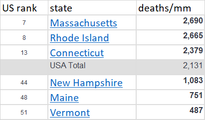 MA, RI, CT were among the worst states in the US for deaths per million (cases are hard to comp due to testing level variance)