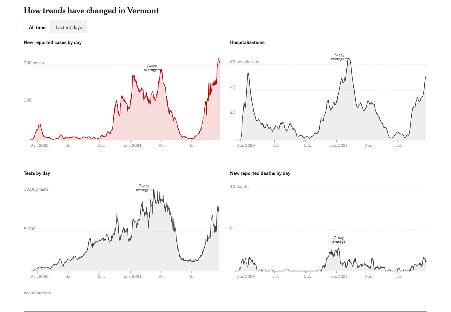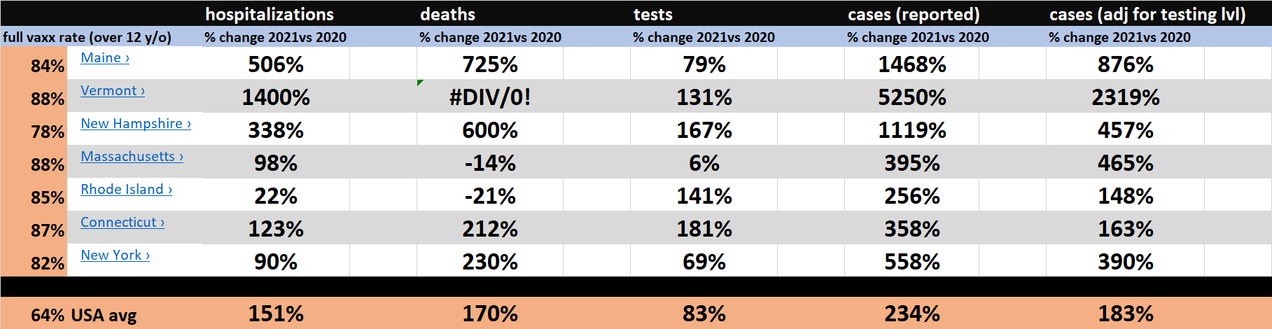 vermont shows the same pattern and will be a very interesting bell-weather to follow. they have had very low covid to date and 88% of over 12’s vaxxed. so it’s an even purer test of vaccine efficacy.
