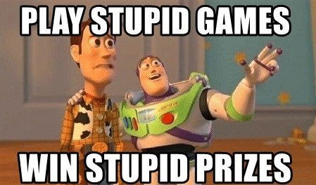 when you play stupid games, you win stupid prizes and this is a very, very stupid game we’re all taking part in…