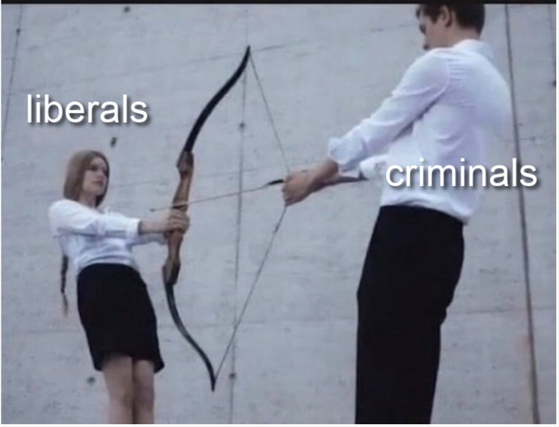 but this is the impulse that’s killing us. ideas like “disparate impact” where if more people of group B wind up in jail vs group A it must be racism are killing us. it’s just wrong. crime is crime. violating rights is violating rights.