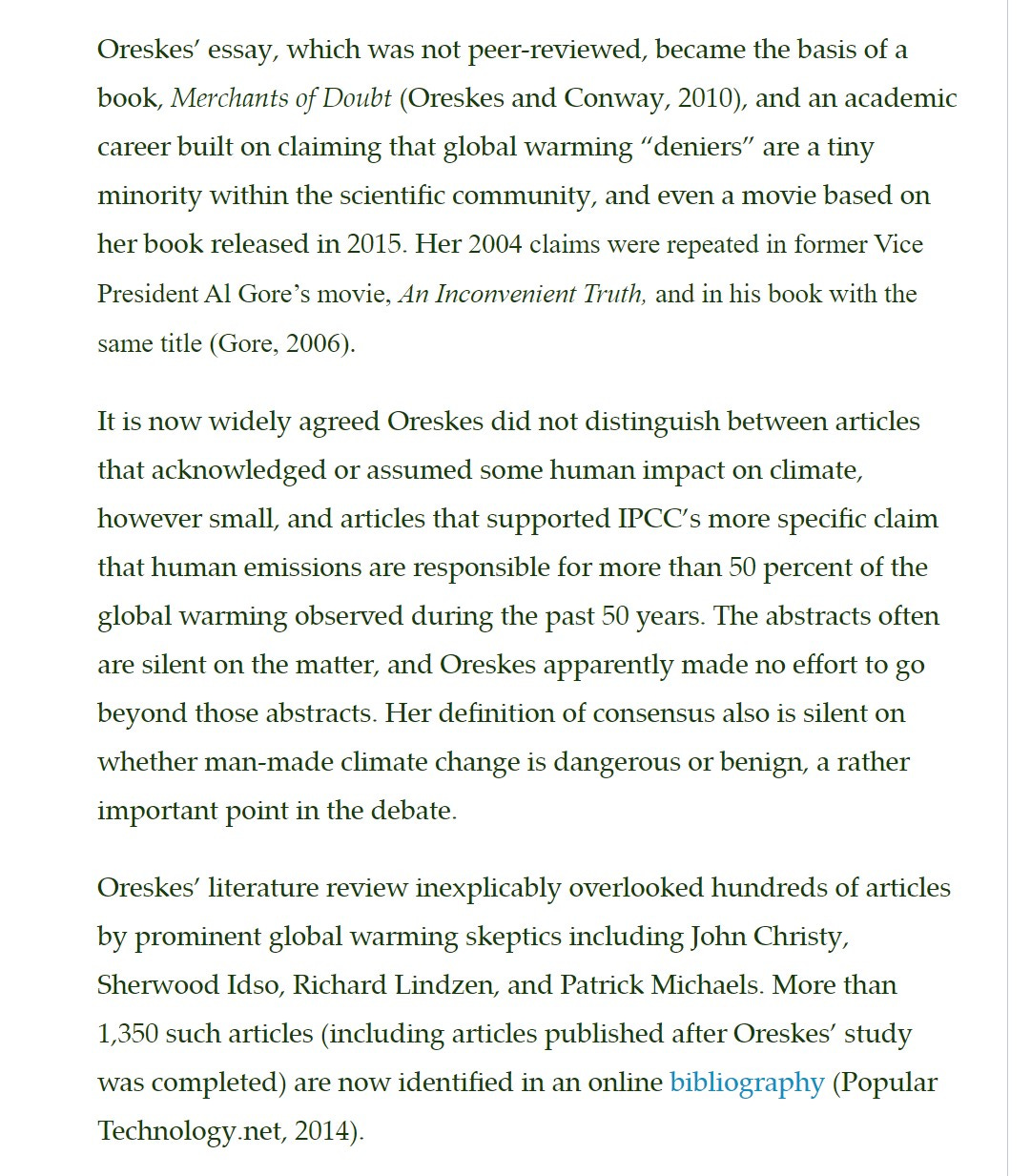 would that any of this were new, but it’s not. the AGW (anthropogenic global warming) crisis cultivators have been at this since the beginning dating back to and even before the notorious naomi oreskes fraud about implausible percentages of climate scientists agreeing about AGW. there have been dozens of these trash studies using terrible and slanted mythologies to make claims about “consensus” as though that would somehow bear on “factual” even if it were true. but it wasn’t. and it never was.