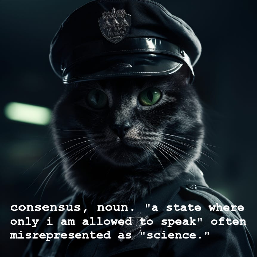 they have bought media and science journals alike to demand this. they have taken control of grant allocation and thereby the near entirety of academic and governmental practice and position. agree or starve. the appearance of consensus is all and dissent must not be brooked.