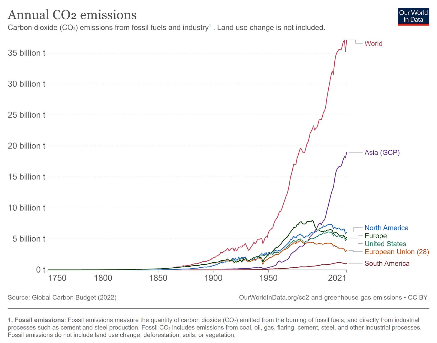 asia is more than half of all CO2 emissions. their output has basically tripled since the early 90’s and accounts for more than 100% of the global rise. any plan that does not involve them is a clear joke. and yet none seem to.