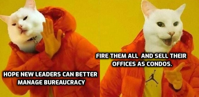 you cannot get “better people next time” or “clean house.” the institutional incentives remain and they will get you the same outcomes. no matter what you deracinate today, so long as we leave the systems in place, this garden will always grow nothing but weeds tomorrow.