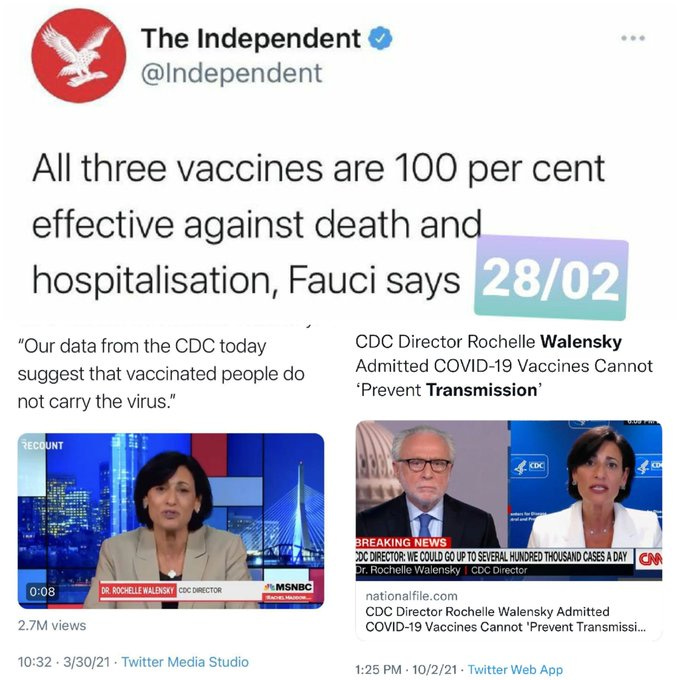 2. Vaccines don't keep you from transmitting infection (the head of the CDC said so).