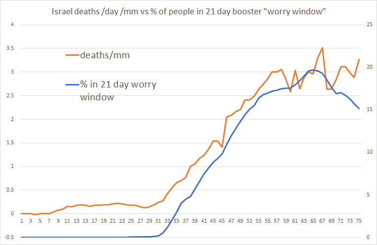 and we’re seeing an increasing amount of societal scale data to back it up. we saw it in mongolia and we’re now seeing it (with far less lag) on israeli boosters. this could be a false alignment and just seasonal signal, but wow are the correlations tight.