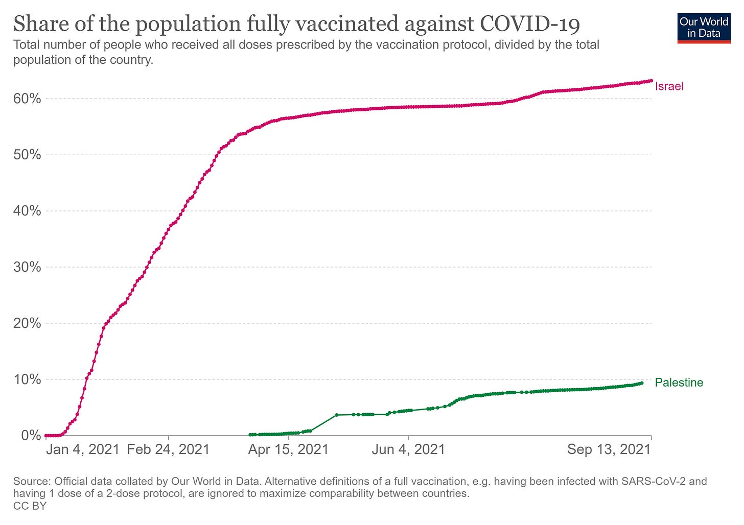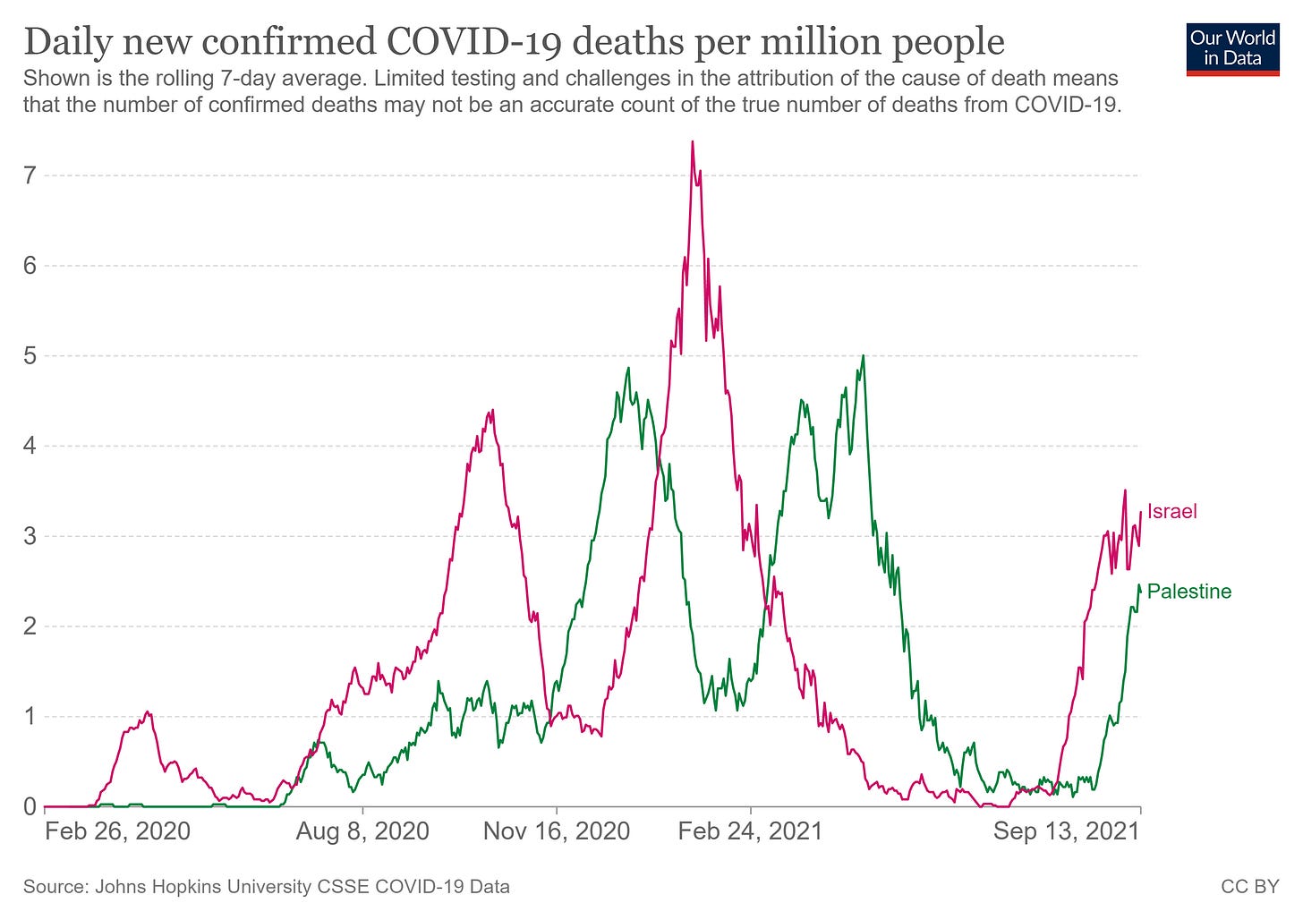 we also see very little differentiation from immediate neighbor (and low vaccine rate control group) palestine who, for whatever reason, seems to lag israel by about 3 weeks on surges.