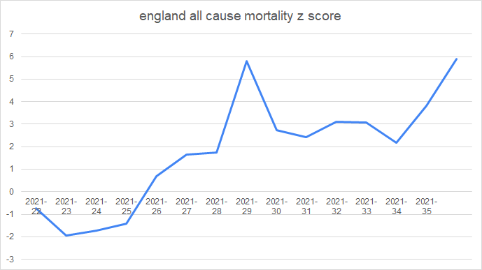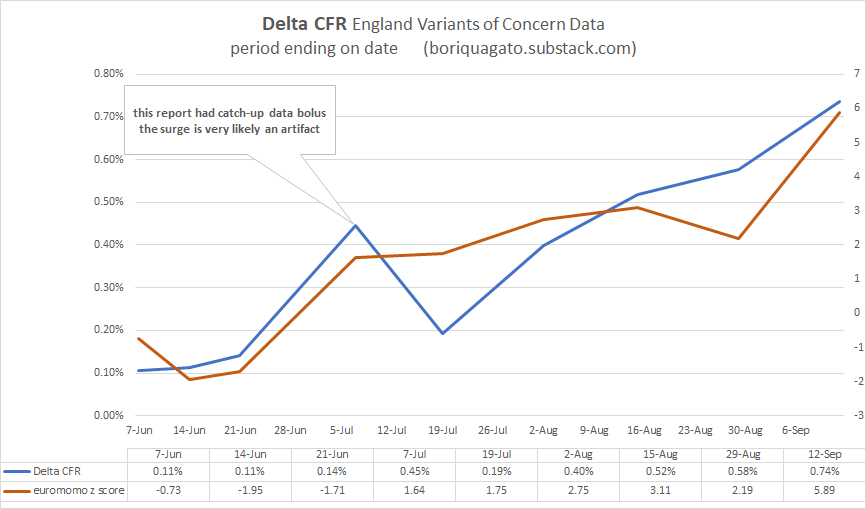 and given that we know that vaccines DO work to stop deaths in the UK (seemingly in the 50-60% range) it’s even more unexpected that CFR would be rising like this. but it is and the rise in the vaxx rate is not hampering it.
