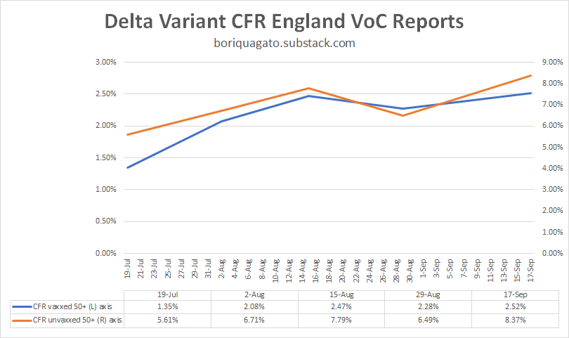 negative VE’s on spread are accelerating cases and this is multiplicative with higher CFR. this is the nightmare scenario and no one is left better off as a result. the CFR among the high risk vaccinated groups is way up too.