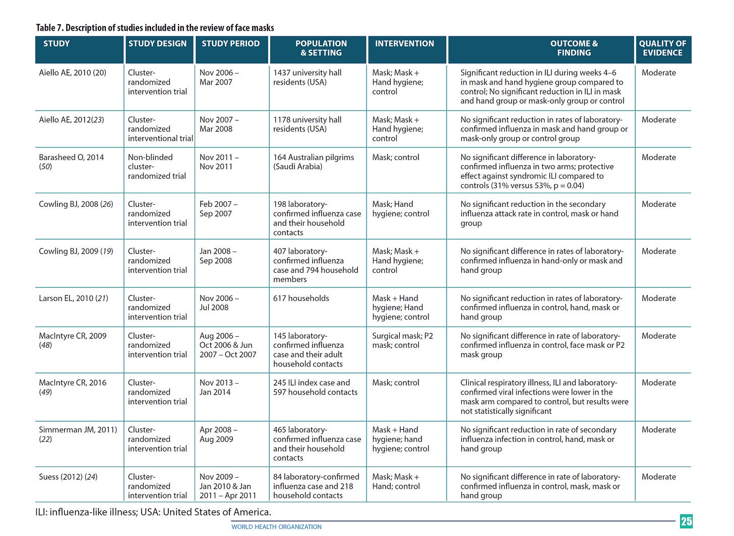 and this was, of course, all known before hand. the WHO did a meta-study of masks in 2019 and determined that they do not work to stop flu or similar RTI spread.