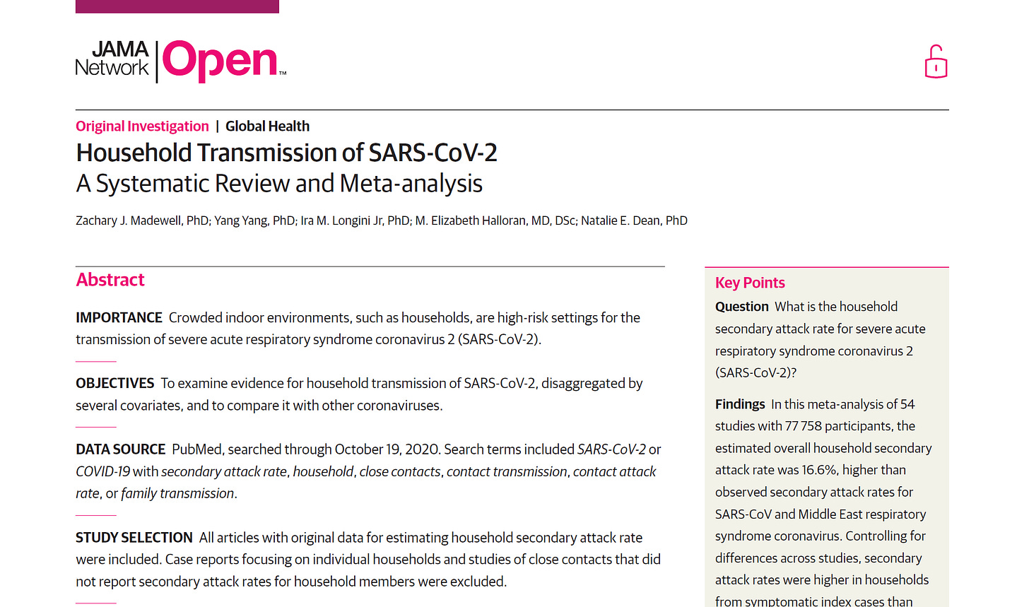this meta-study was published in december 2020. it looked at 54 prior studies with a total of 77,758 subjects dating all the way back to april 2020. we’ve had this data since very close to the beginning and certainly by summer. here’s what the study found: