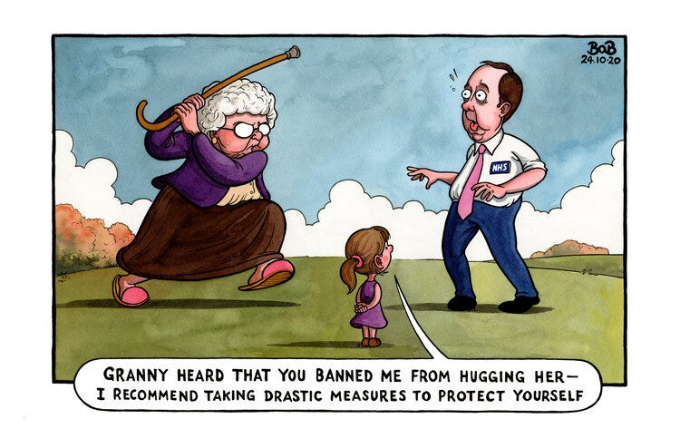 His disabled daughter (it would appear - as a result of injuries originally caused by a hospital & its staff) has been terribly affected by lockdown measures (e.g withdrawal of critical health services & appalling issues with masks being essential in hospital). He was reported to twitter by a virulently woke lockdown/mask fanatic doctor. He issued a full apology but clearly this wasn't enough & he was fired, probably with her putting pressure on them. As a political cartoonist. The whole point of cartoonists in daily newspapers is to produce satirical content, and if he'd been working for Private Eye it possibly wouldn't have happened.