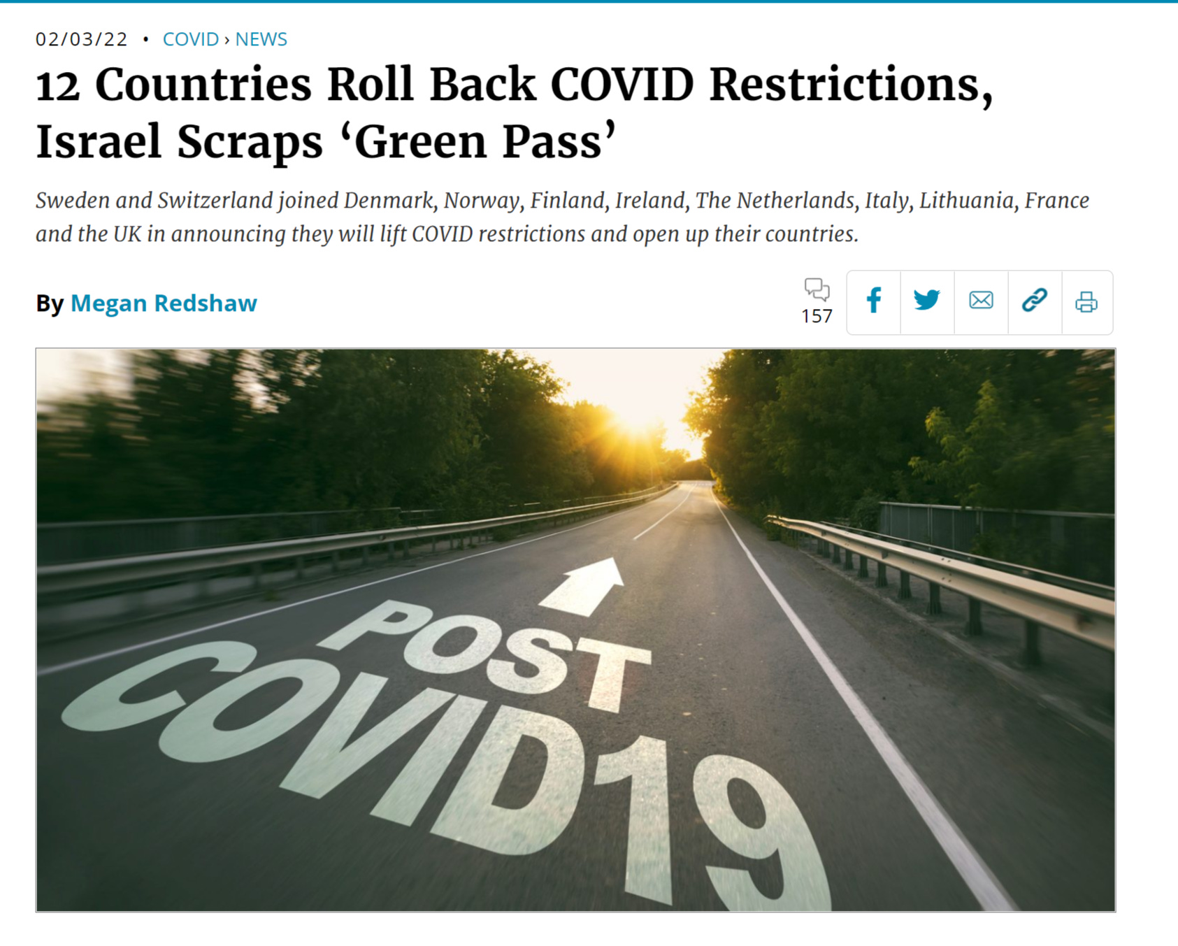 increasingly, the world is over this over-reaction. lockdowns, masking, quarantine, school closures, and vast vaccine programs have bought nothing but economic ruin, societal damage, and vaccine escape and OAS/hoskins effect variants.