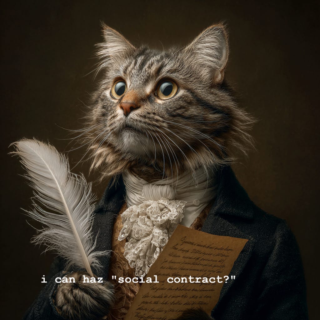 you see, the point of a social contract is that we all limit ourselves for the greater good. i refrain from hurting you and taking your things so that you, in turn will refrain from hurting me or taking my things.