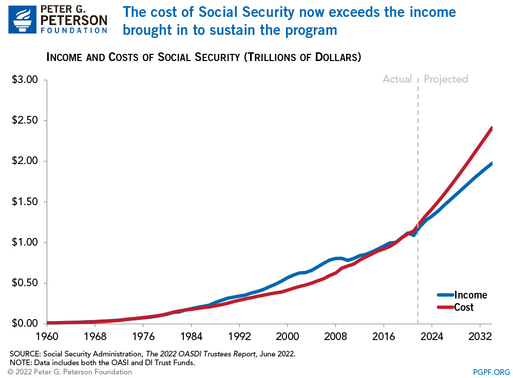 they are OUTLANDISHLY expensive and by the time they finish their locust-like consumption of the US federal budget, there’s going to be nothing left but mountains of debt. barring massive reform, gen X is not getting the social security they were promised (and paid for). i’ll be surprised to get any. even if they means test it, they probably cannot save either SS or medicare. the numbers are just impossible.
