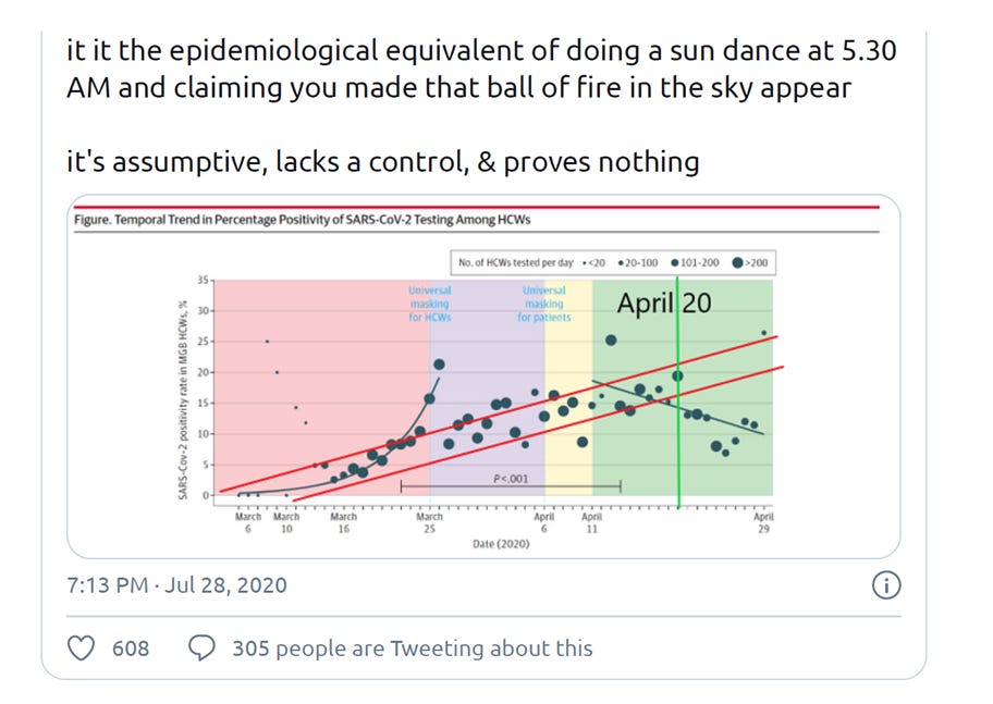 the studies they have foregrounded have been utter junk from day one. the first big one they trotted out was the mass general hospital study. this is a variety of study i came to call a sun dance back when gatos were still free to roam the broad savannahs of twitter.