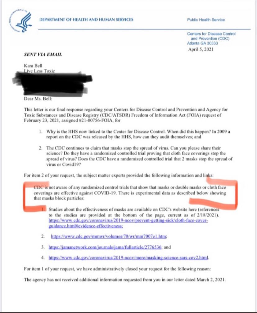 this is the response to a FOIA request to the CDC asking for the randomized, controlled trials supporting mask use to stop covid.