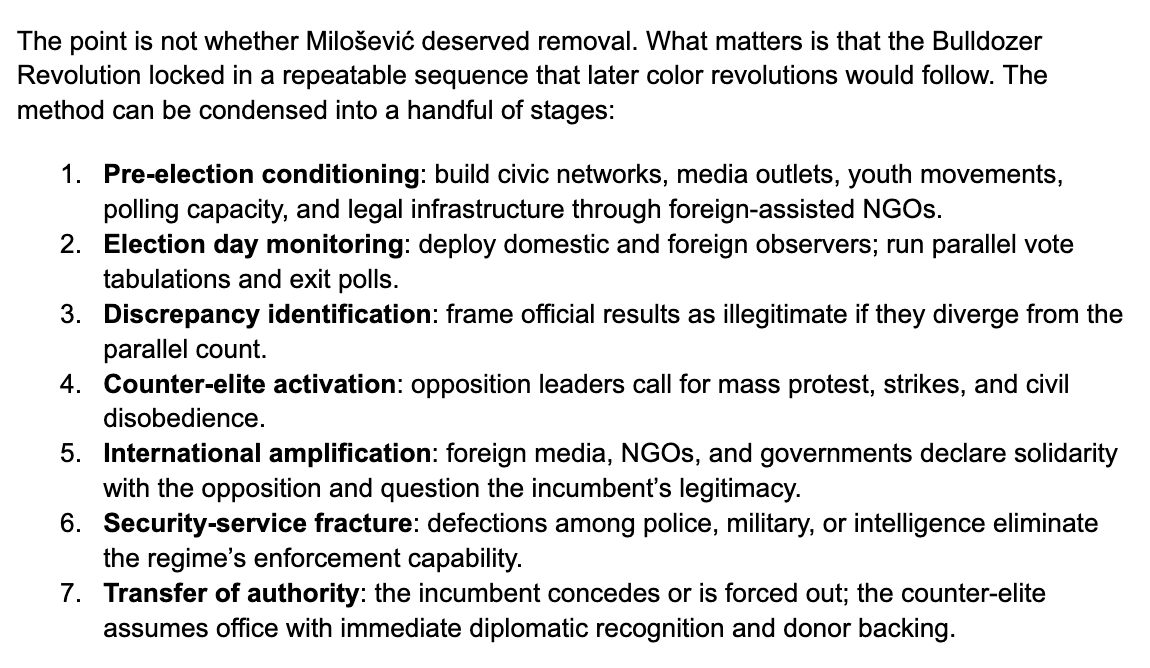 this is the real color revolution: overthrow, reorder, deny, and claim grass roots. one can quibble about exactly how this works and, obviously, intelligence agencies and influence operators are understandably coy about that, but i think this outline from the prolific and always excellent “data republican” does a good job of laying this out.
