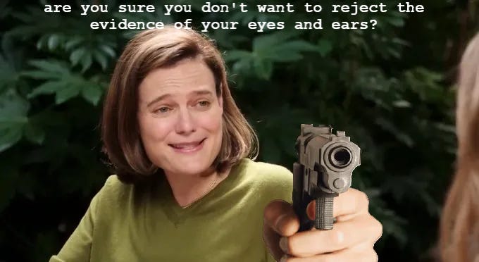 and each new lie told and believed, each new falsity injected into the matrix makes the next one easier. there is less and less to which anything may be validly compared and the inconsistencies mount until people really start believing things like “vaccines were never supposed to stop the spread of a virus,” “oceania has always been at war with eastasia,” and “joe biden is sharp as a tack.”