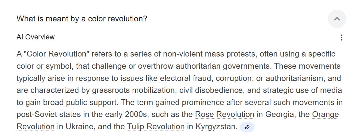 people have been speaking a great deal about “color revolutions” lately and this is a phrase both misused, misunderstood, and under intense renovation as the very manipulators who used these ersatz revolutions as a tool of statecraft now propagandize them into “and we were never here,” turning carefully cultivated and orchestrated psyops and influence campaigns into “grass roots values of the common man.”