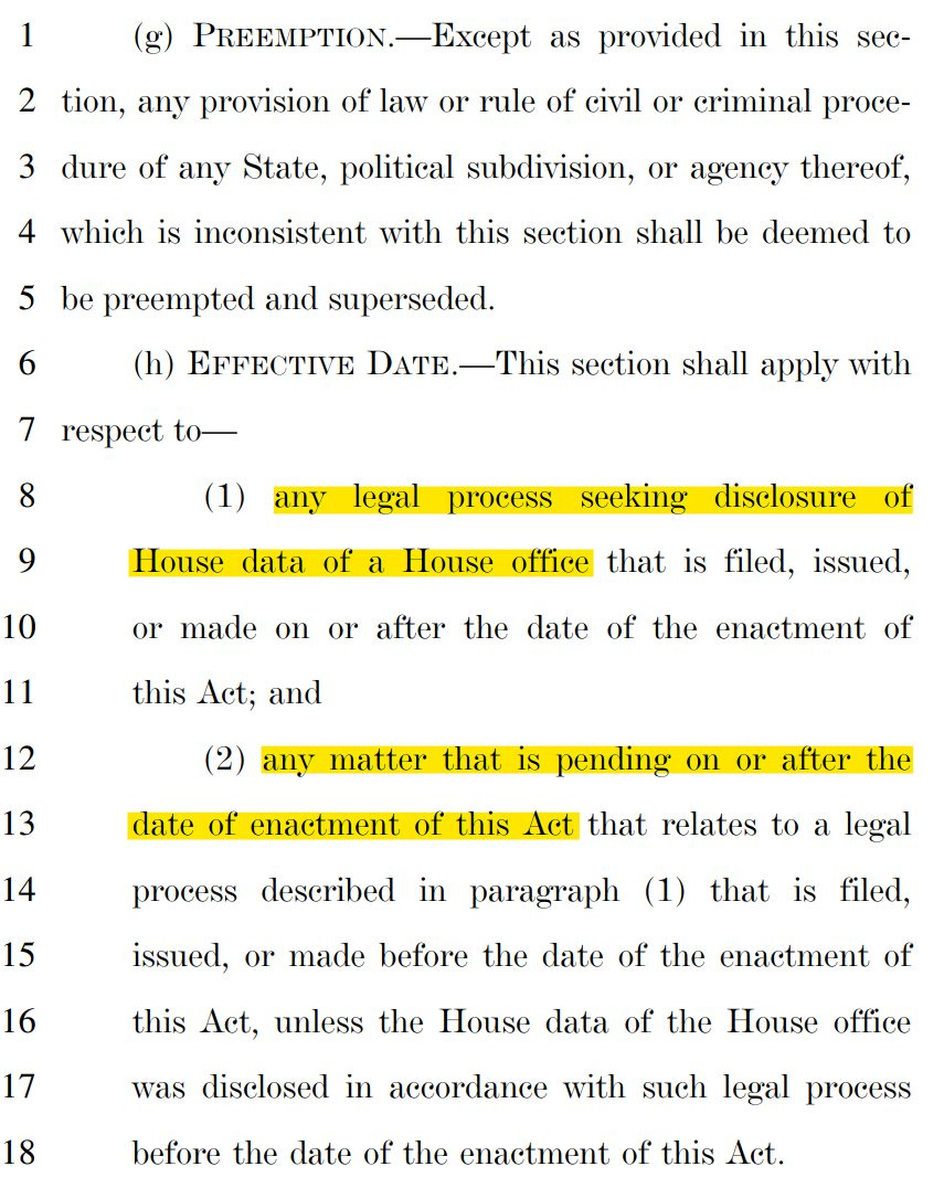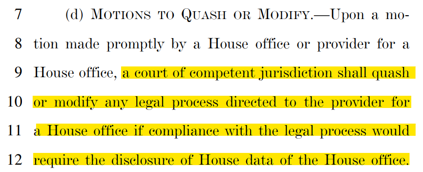 this absurdity grants each house member and office the right to quash subpoenas for data from their office including emails and electronic records.