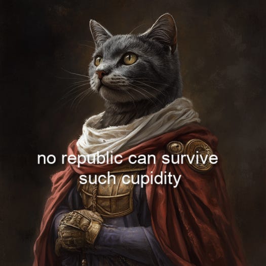We have long ago reached the "open looting" stage, where everyone mouths the usual old platitudes, while everyone who can steals everything not nailed down.