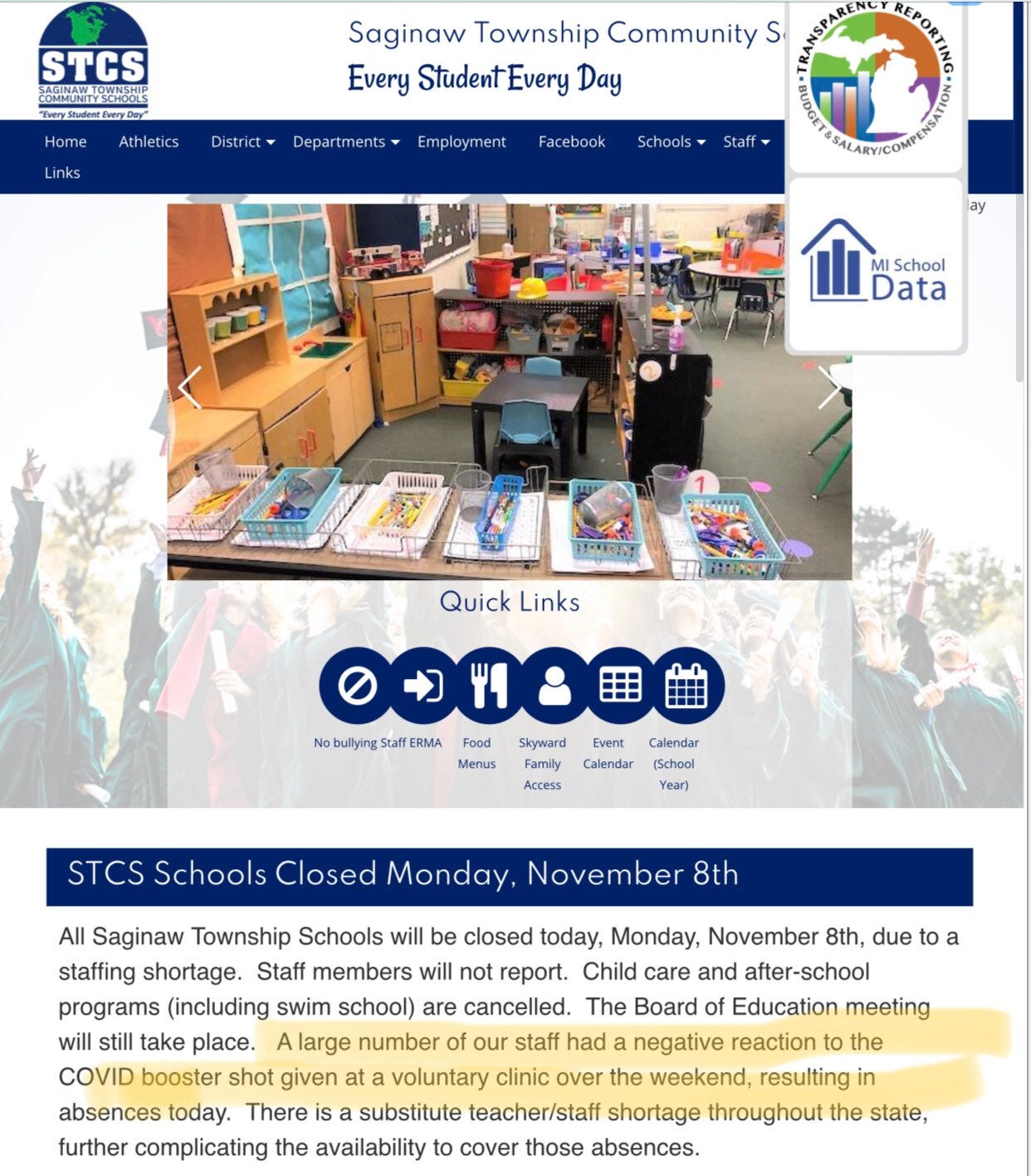 yet here we had such a “large number of staff have a negative reaction to the covid booster shot” that they had to cancel school.