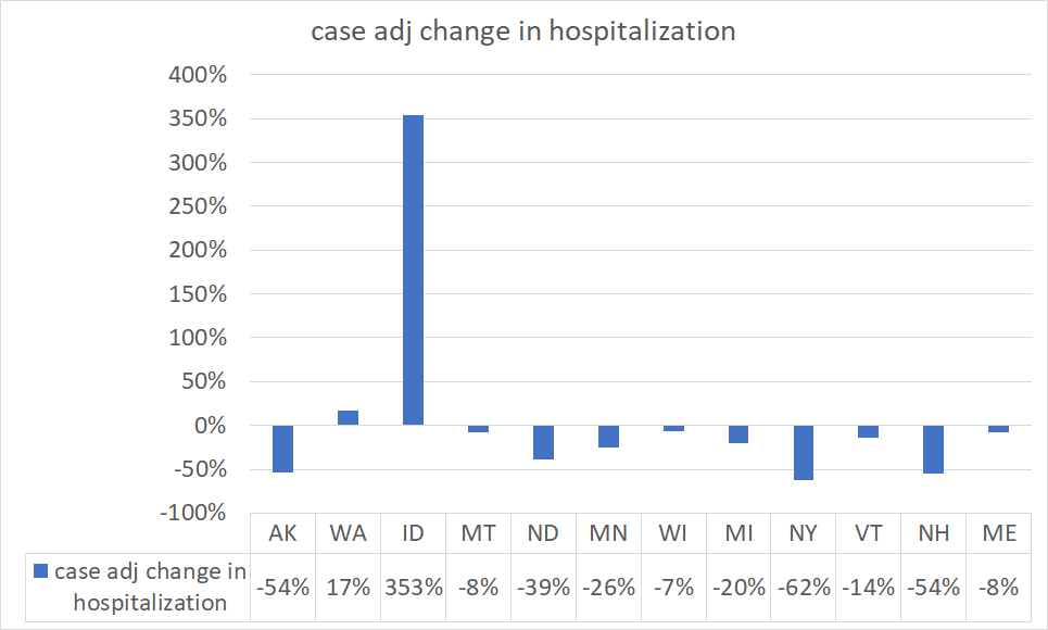 all but 2 states saw CHR drop. (i have no idea what’s goin on in idaho. their adj cases are up quite little but their hospitalization is exploding. i suspect a data issue, but i’m really not sure. if anyone has any thoughts, please chime in.)