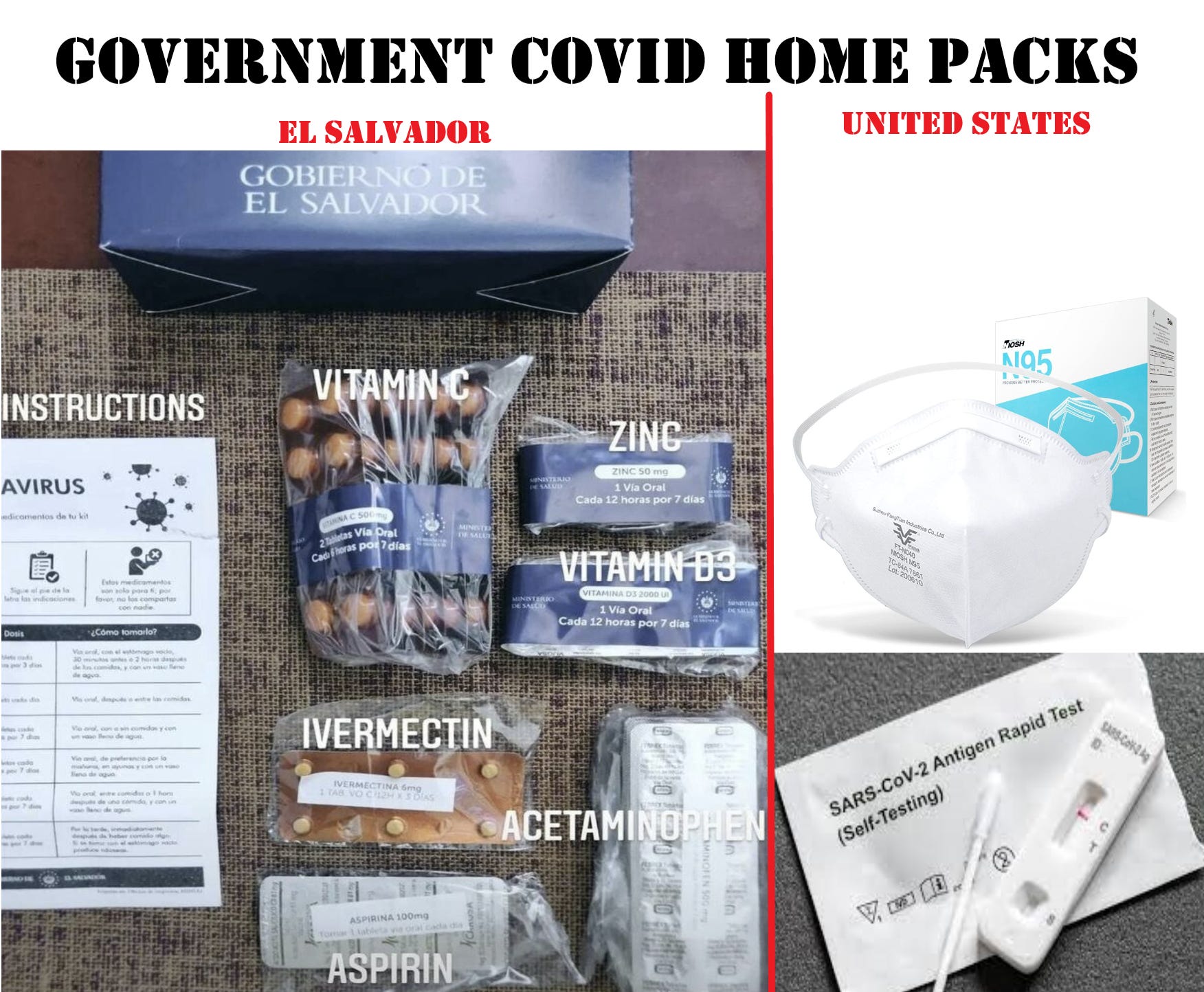 I'm from El Salvador and this is true. Many of my family members got the Ro and received these packs. Also, El Salvador is one of the only countries in the world that doesn't require vax NOR a negative test to enter! Its hard to believe that this dangerous, near-dictator of a president is on the right side of things on covid. Take that first world!!!