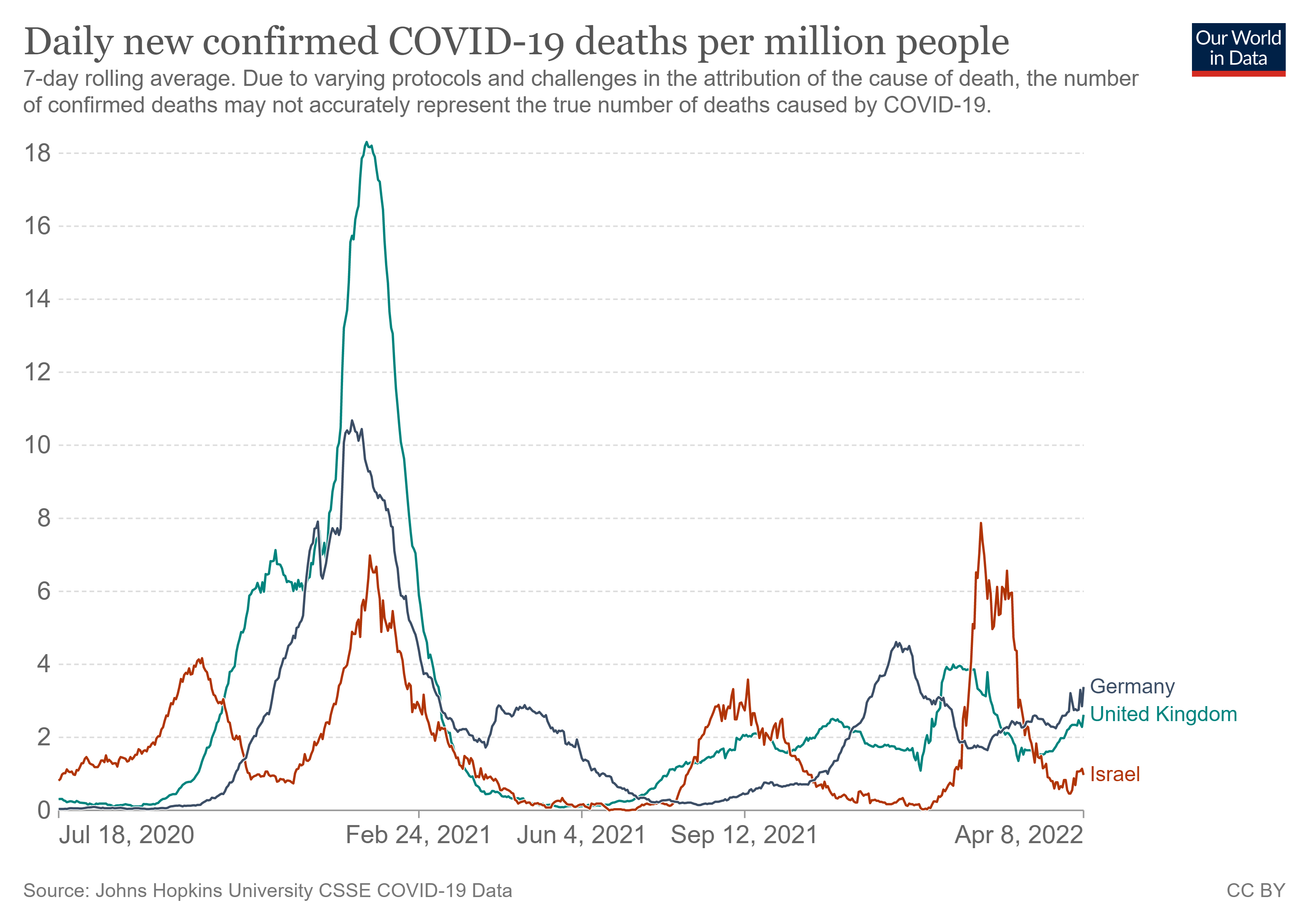 something seems to be going on in many of the high booster areas. deaths are changing trend and rising out of season. this seems to correlate to BA.2.