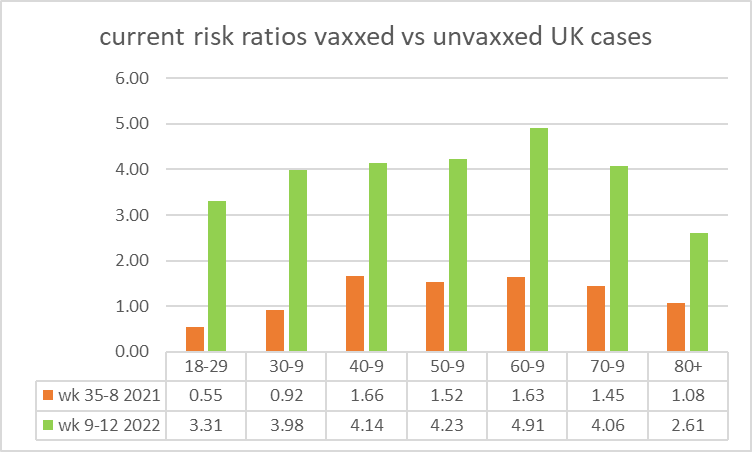 those with 3 doses are now all between 2.6X and 4.91X the risk of contracting covid.
