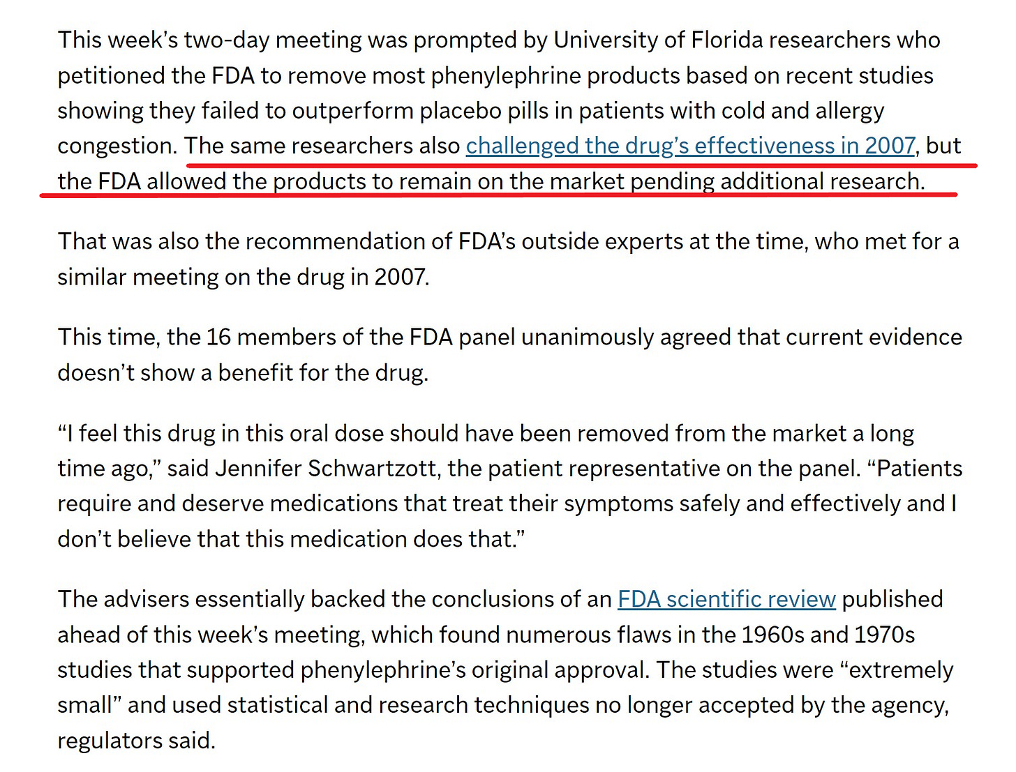 and did this new ingredient even actually work at all/was it even evaluated by any remotely modern standard of testing as a decongestant before it was sold for 17 years in 100’s of millions of boxes of over the counter medicine?