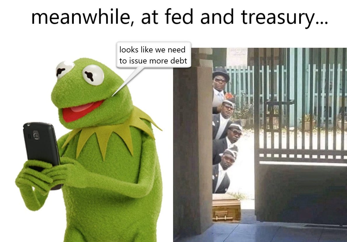 it’s astonishing to me that there is basically zero foregrounding of this in DC. who is even running on a policy of “we need to balance the budget”? it seems the best we can muster is kabuki debate about whether we should ride the rails to ruin quickly or a little more slowly.