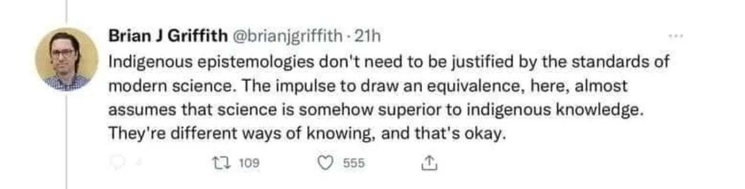 claiming that indigenous understandings of the world need not meet the standards of modern science is basically affirmative action for data.
