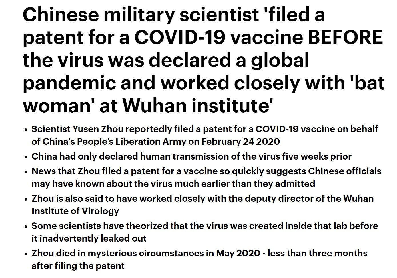 did a chinese scientist file patent for covid-19 vaccine in feb 2020?