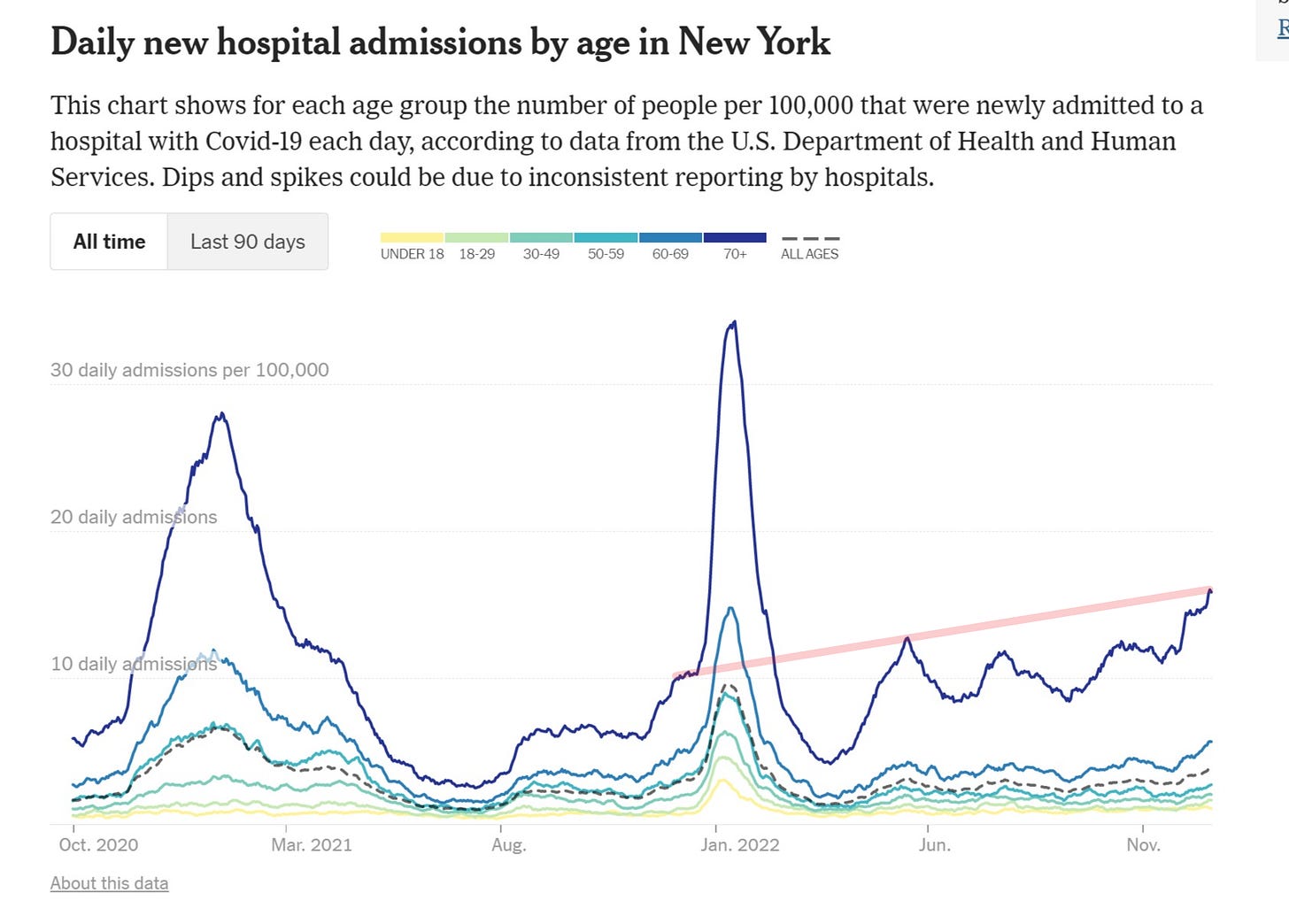 this data seems to stand in stark opposition to such guidance and would appear to caution strongly against it and the data canary of the 70+ age cohort in NY who is nearly 100% vaxxed is tracking up about 50% from same date year ago on hospitalization which is further cause for concern on antigenic fixation etc.