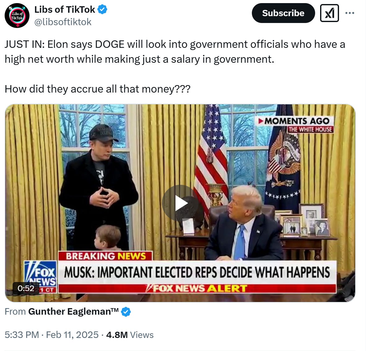 DOGE is important but it's also a head fake to make the Ds reveal their strategy - a scouting mission of sorts. The data, leaks, and their timing are a set up for this strategy. The D's brought a knife to a gun fight...and they are still unaware of it