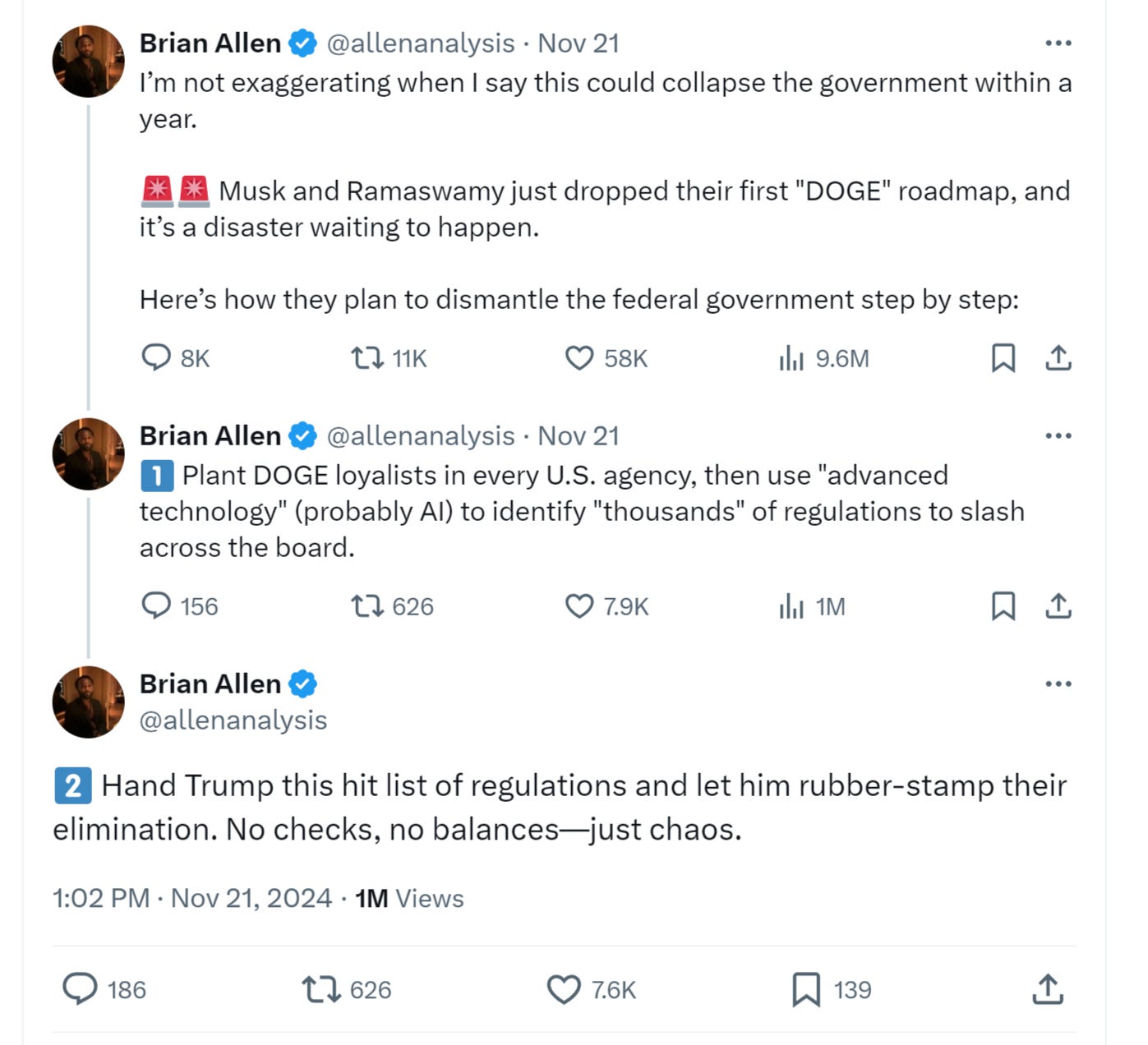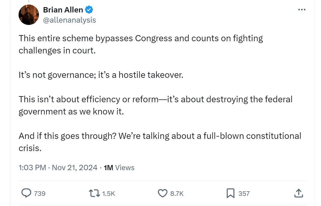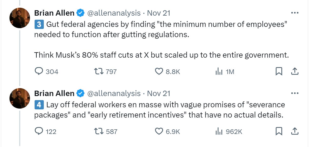 i chose him because he seems an apt and representative example of a viewpoint emerging in response to the increasingly apparent roadmap of elon and vivek’s “DOGE” as others start to see what certain internet felines were discussing the other day about what’s coming to DC.