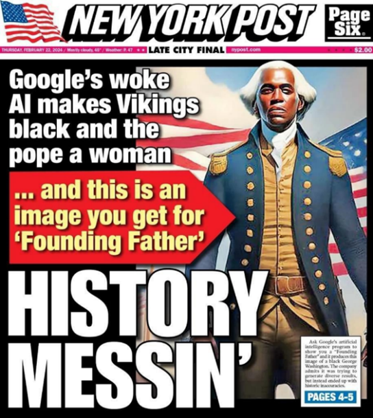 the hilarity of woke AI turned google’s grand reveal into a pratfall for the ages. it was so bad it was not even laughable. it was piteous. mistrust is blooming like a springtime of flowers.