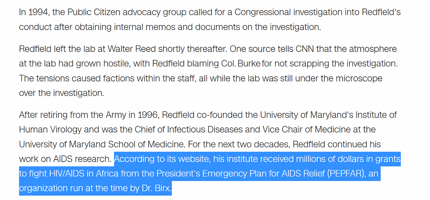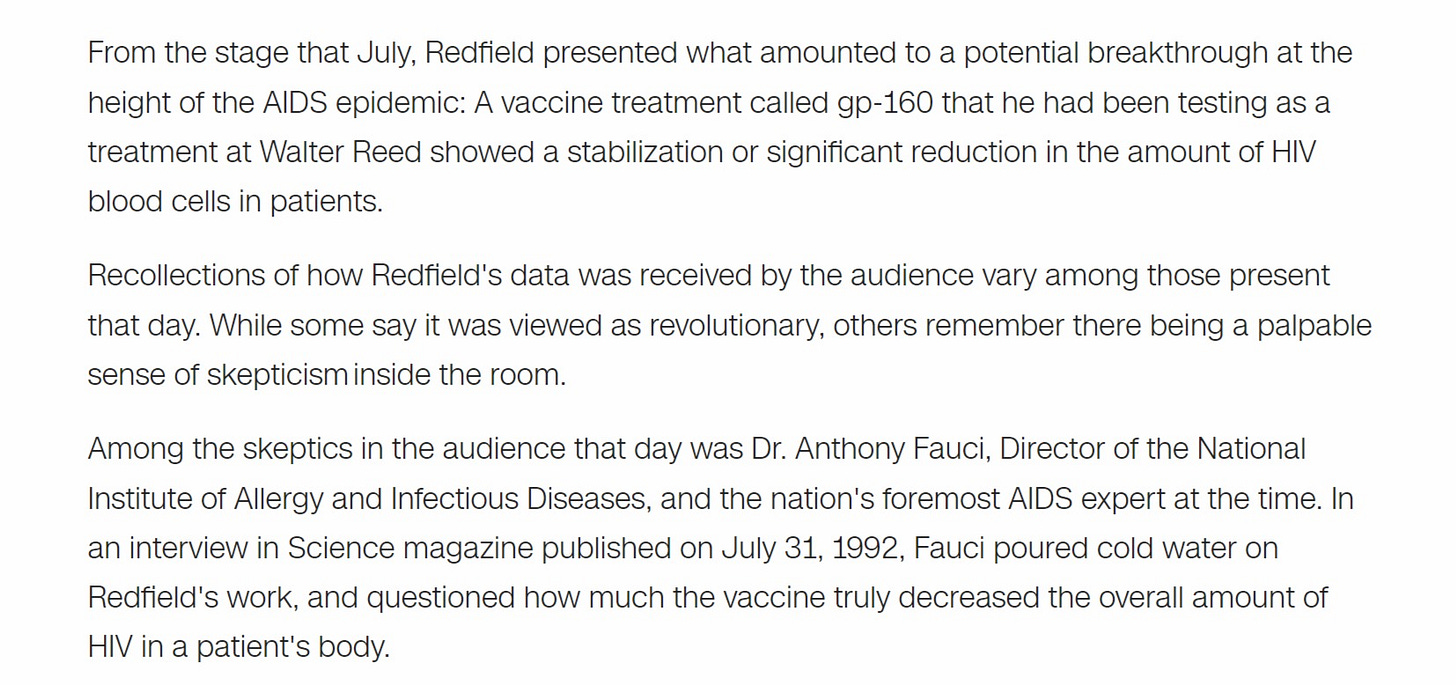 (fauci was, of course, busy pushing the deadly drug AZT on minority groups, hiding side effects, and warning of catching AIDS from causal contact and toilet seats, so let’s not mistake him for the white hat here. he just had different hobbyhorses and self-interests)