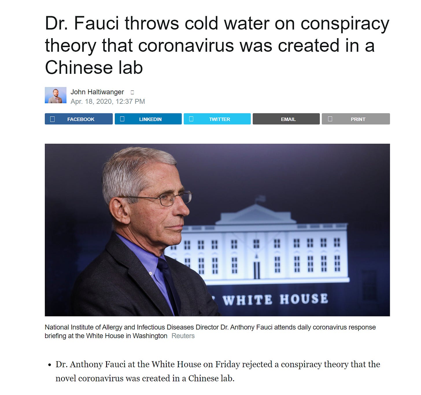 and daszak was right behind him calling the response “brave” in personal e-mails to tony and orchestrating, behind the scenes, some science to wave around and help. he and 27 other “experts” most of whose hands were just as dirty as his own and whose livelihoods and careers would be similarly destroyed by a revelation of viral escape causing millions of deaths, authored a PIECE in “the lancet” that among other claims said this: (emphasis mine)