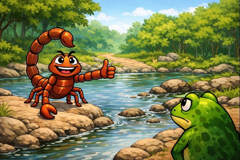 but these people have all the morals of a scorpion with its thumb out seeking to hitch a ride on a frog.
