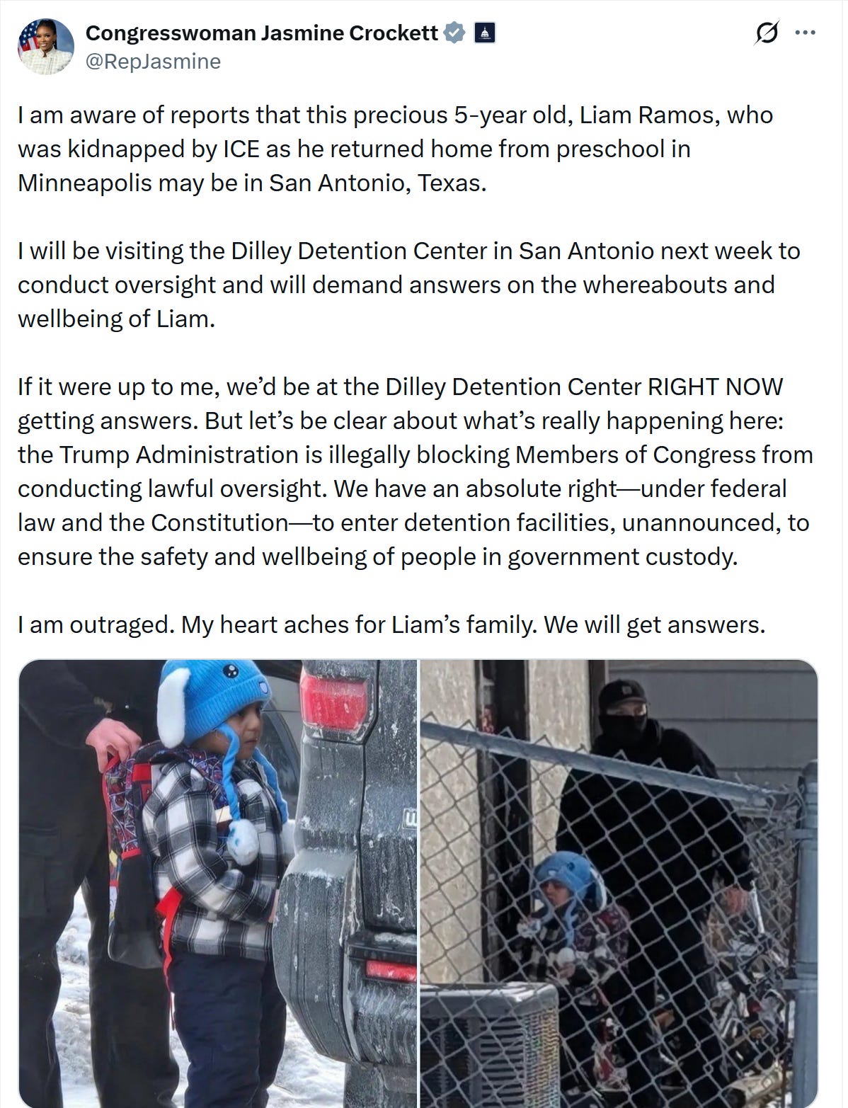 ICE then took custody of the boy. they attempted to return the boy to his mother who was inside their home but she refused to open the door or take her son. (why is unclear, but “fear of arrest” seems a likely candidate)