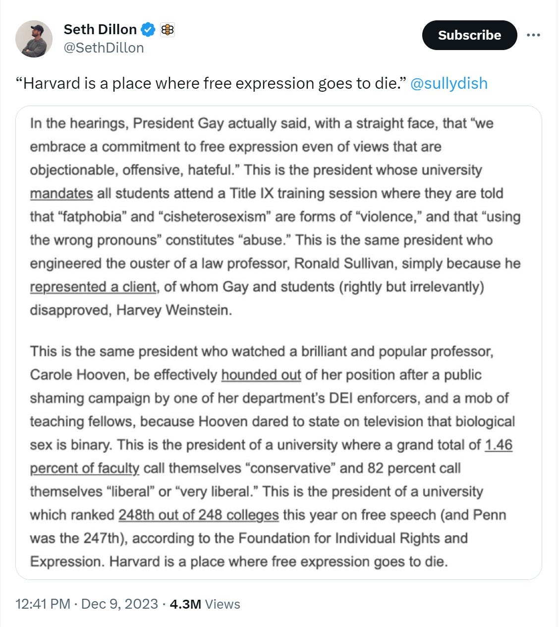 After Claudine was appointed president in March, I made Harvard #1 in the Demoralized DIEvy League rankings. Their determination to be #1 in everything extends to the biggest clown running the asylum: https://yuribezmenov.substack.com/p/how-to-get-into-harvard-part-3
