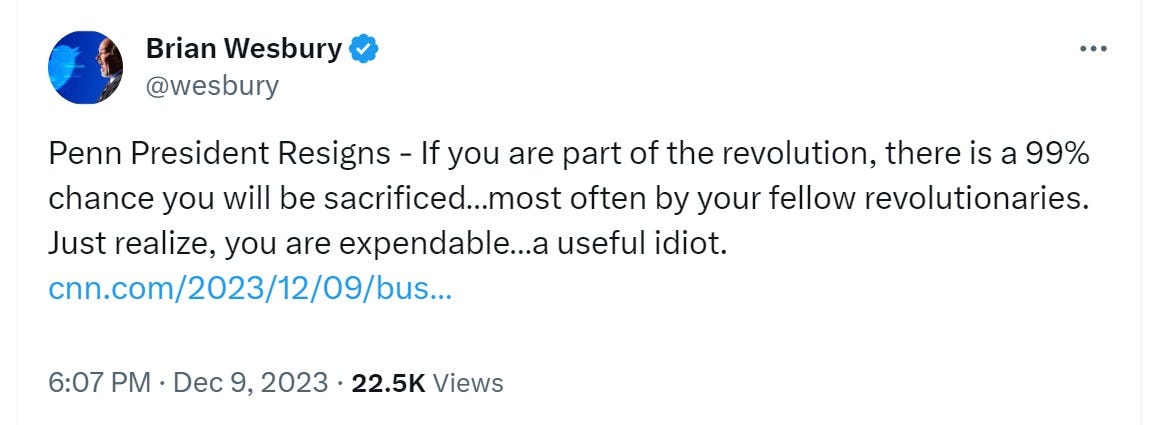 This is spot on, as usual. I think most Jewish people were horrified by the hearings because clearly these colleges don’t believe in free speech, but only use it for those they prefer, and now Jews saw that they’re on the outside of this new system.