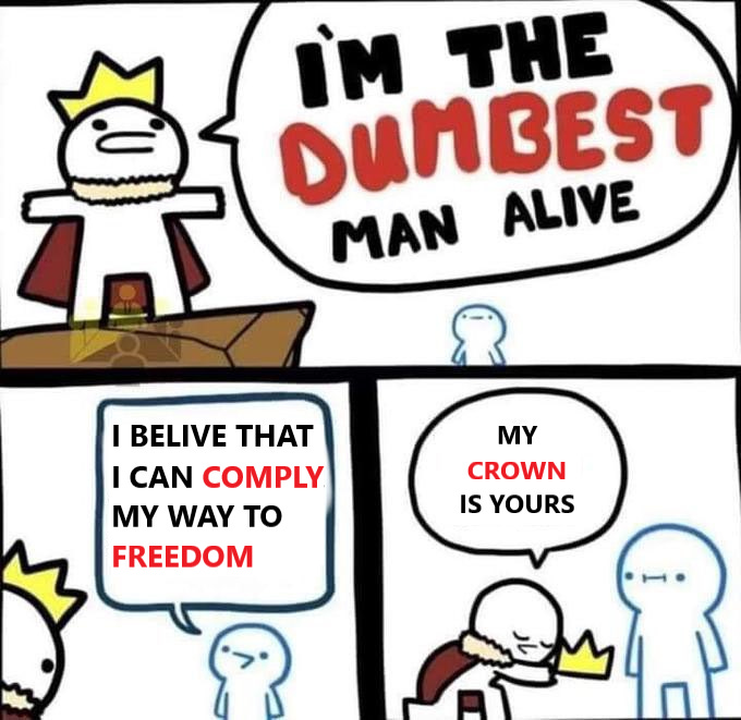 what 5 minutes ago was the very intrinsic essence of your allegedly inalienable entitlement as a human is now theirs to withhold until you comply.