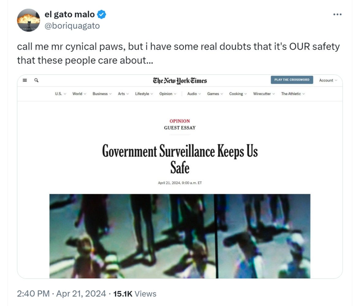just imagine the response they will justify and demand and the intrusions they will normalize and portray as virtue the picosecond something blows up in a bombing or someone gets targeted and killed.