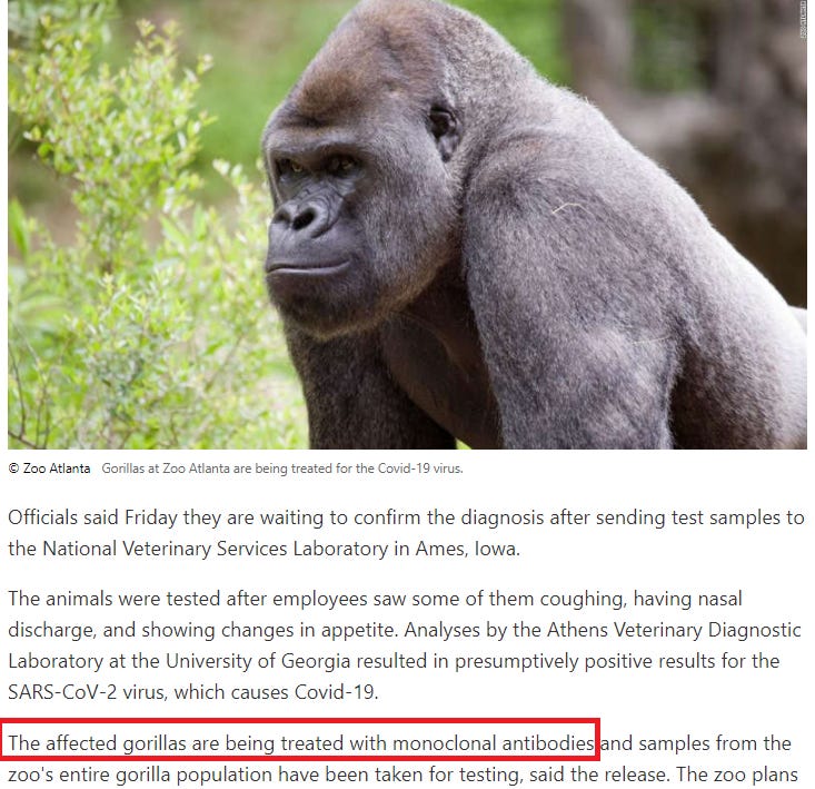 perhaps if the gorillas are clever, they might even trade some mABS to the zebras for some ivermectin…